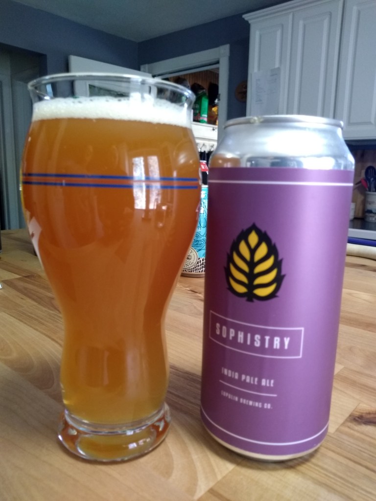 Welcome to our first taste testing session! Today we’ll take a look at Sophistry 05 from Lupulin Brewing. Part of their limited series that explores hop flavors from the known to the ‘never have I ever’ heard of, Sophistry 05 is an unfiltered IPA with a bite that settles on the back and sides of the tongue. It features a nice rounded flavor from flaked oats and wheat but is a bit strong with the tropical citrus flavor. It pours a hazy amber, almost bordering on an orange marmalade color with about a finger of head. IBUs sit at 65 with an ABV of 7%, so a relatively easy drinker as long as your in the mood for citrus.